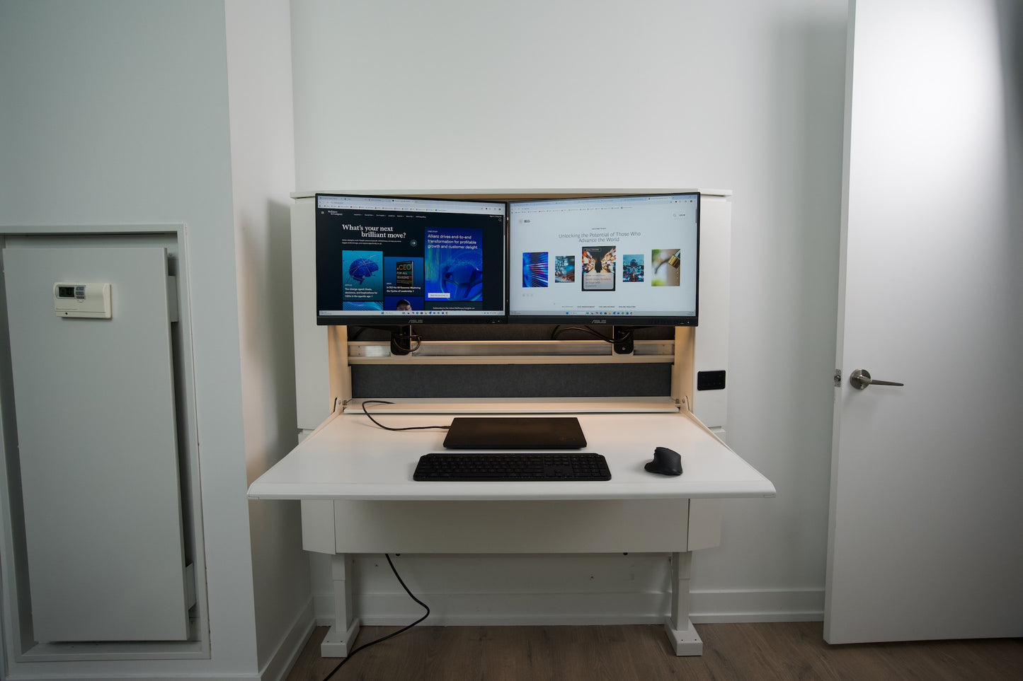 Deskreet eliminates that compromise — creating a full workspace that disappears when the day is done. It’s not just efficient design, it gives space back to the people who use it.